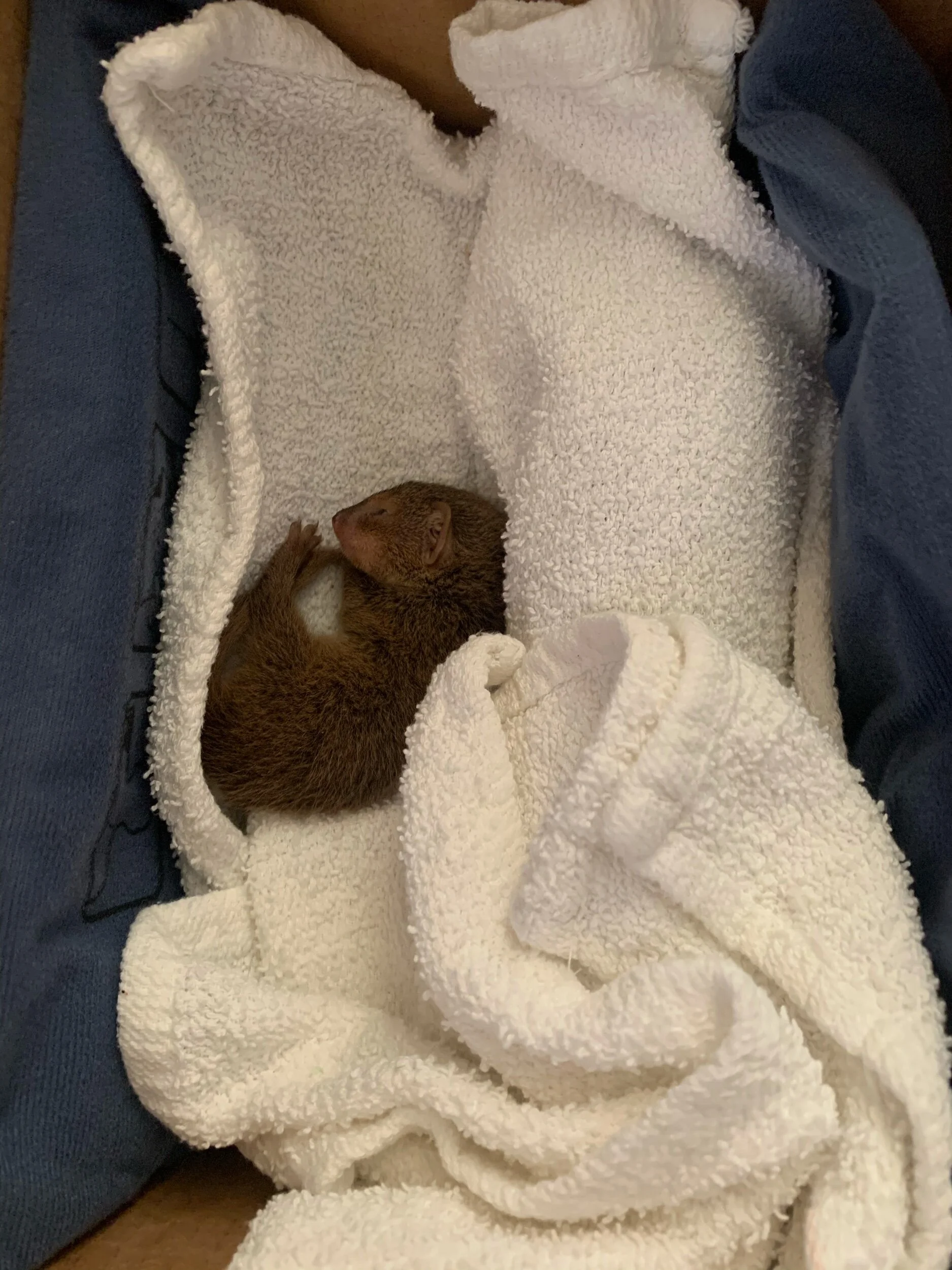 Mongoose babies, like other mammals are unable to produce body heat. Put your baby on a heat pad with a towel inbetween and make sure the baby is warm (not hot) to the touch.